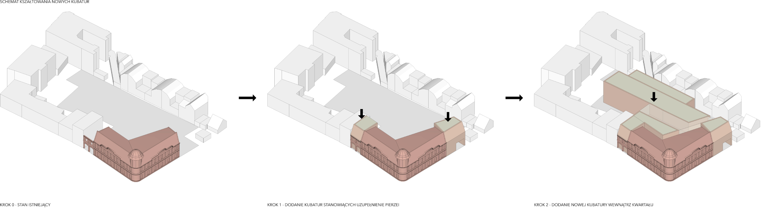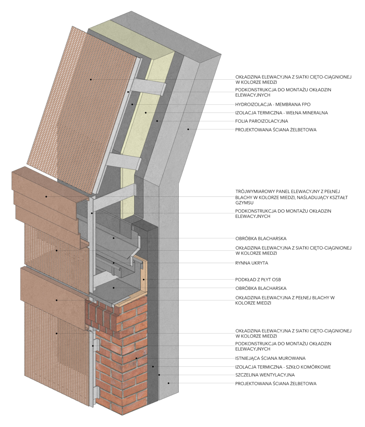 Główną ideą projektu było stworzenie nowoprojektowanego budynku wpisującego się w opracowywany teren w taki sposób, aby nie przytłaczał istniejącego, zabytkowego budynku Starej Octowni. Specyfika architektury muzealnej charakteryzuje się wysokimi kondygnacjami i brakiem okien co stanowi potencjał, ale jednocześnie zagrożenie szczególnie w kontekście sąsiadującej, historycznej zabudowy o mniejszej skali. Projekt zakłada zachowanie istniejącej tkanki, która nadaje wyjątkowy klimat charakterystyczny dla tego miejsca. Przejawia się on przede wszystkim w surowości materiału przewodniego czyli cegły ceramicznej. Nowoprojektowane bryły powtarzałyby geometrię tkanki historycznej, jak również jej elewacyjne poziomy gzymsów i okien.