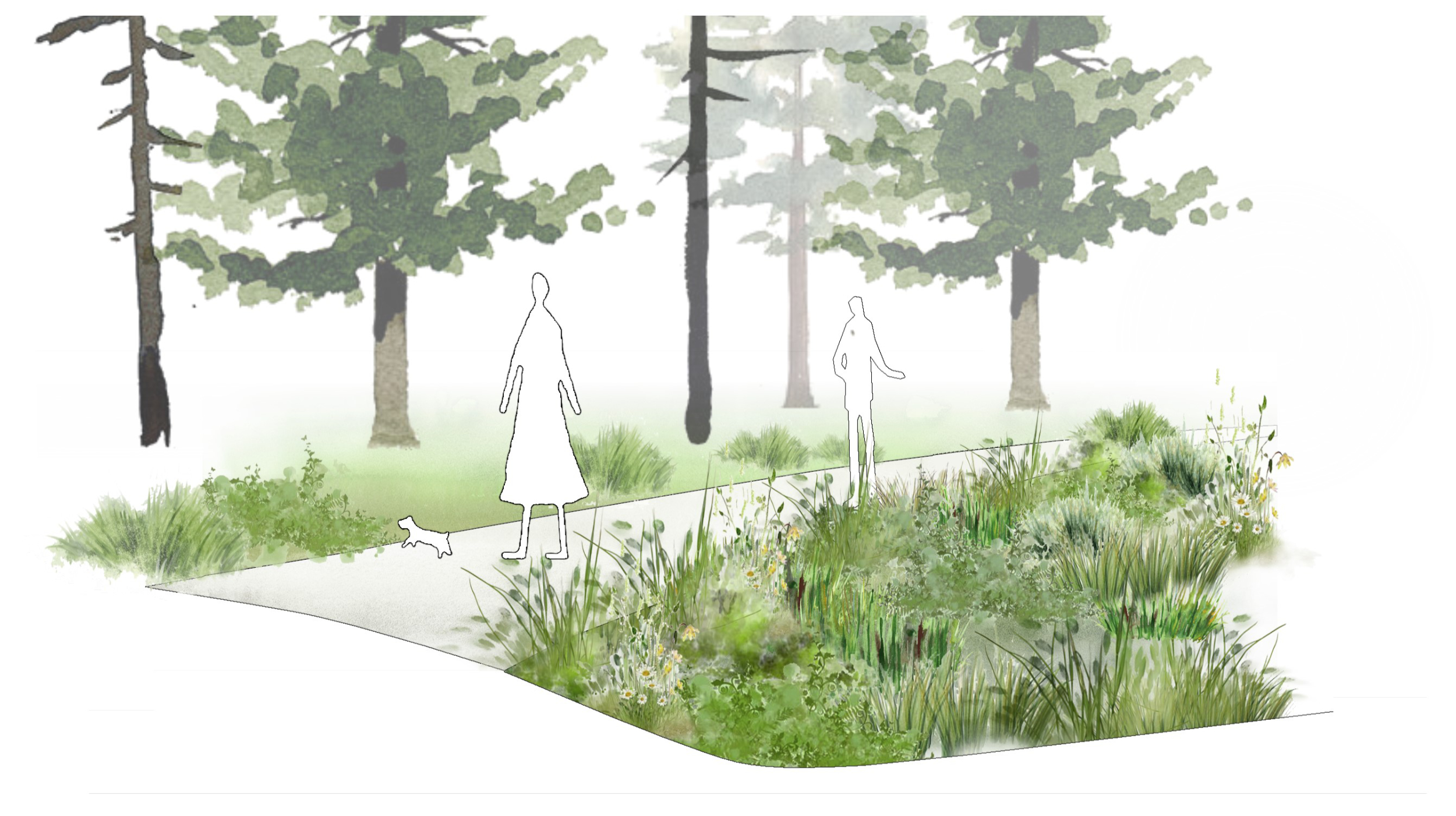 Architektura nawiązuje do lokalnego stylu „Świdermajer” – zastosowano drewniane elewacje pięter, spadziste dachy i tarasy. Partery wykończono refleksyjną okładziną, aby optycznie wtopić je w otoczenie. Projekt zakłada bogaty program zagospodarowania terenu – powstanie miejsce spotkań dla mieszkańców w różnym wieku. Kluczowym założeniem było zachowanie jak największej ilości istniejącej zieleni i uzupełnienie jej nowymi nasadzeniami wzdłuż granic działki.