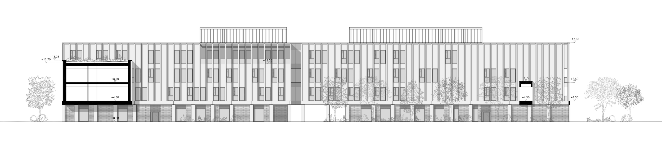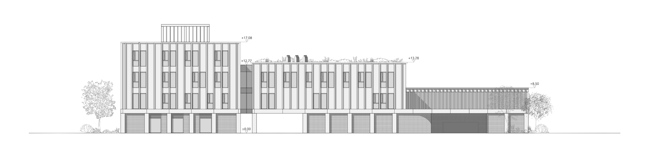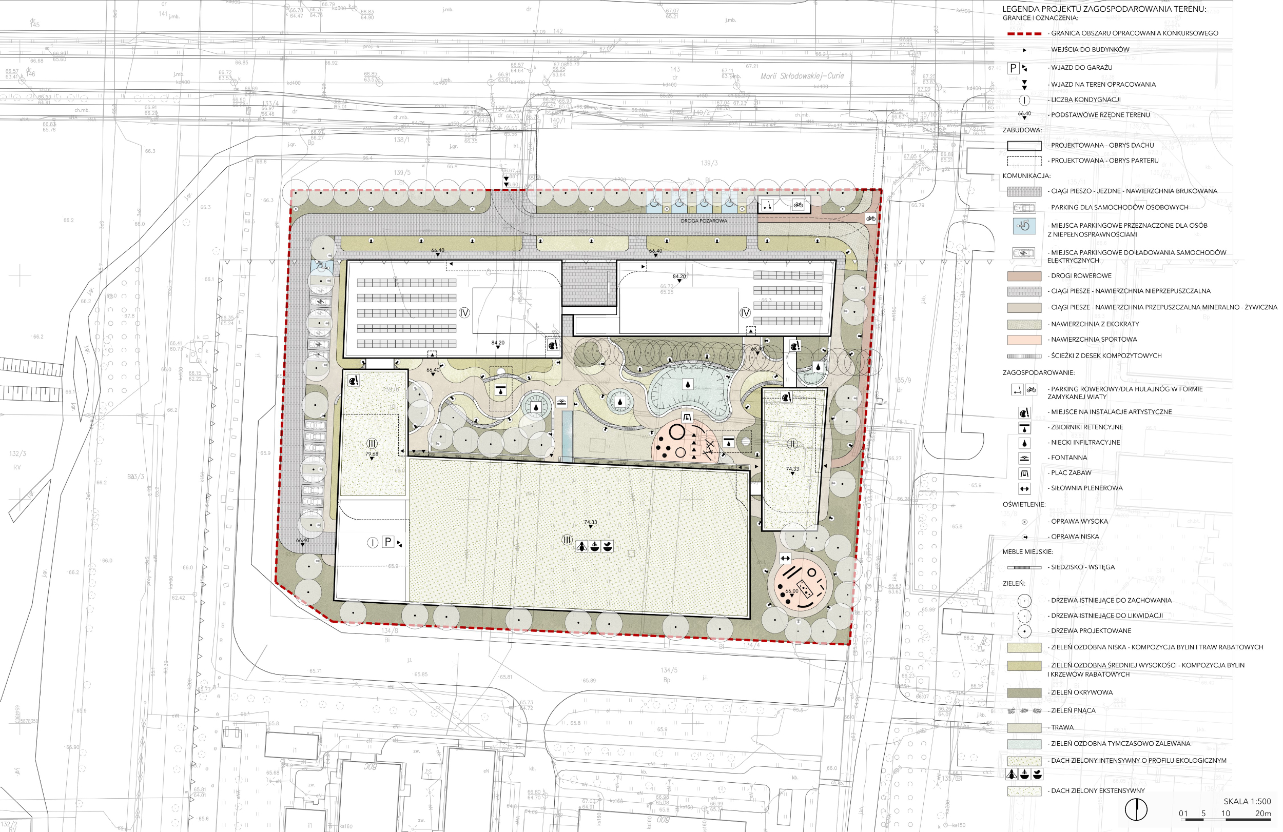 Główną ideą było stworzenie zabudowy miastotwórczej bezpośrednio powiązanej z otoczeniem – bez wydzieleń i bez barier. Zabudowany kwartał naturalnie ustanawia strefy publicznie/półpubliczne takie jak wewnętrzny dziedziniec z placem zabaw czy siłownię plenerową - obszary dostępne dla mieszkańców również poza godzinami pracy Urzędu.