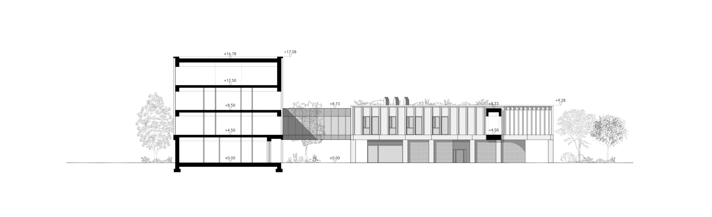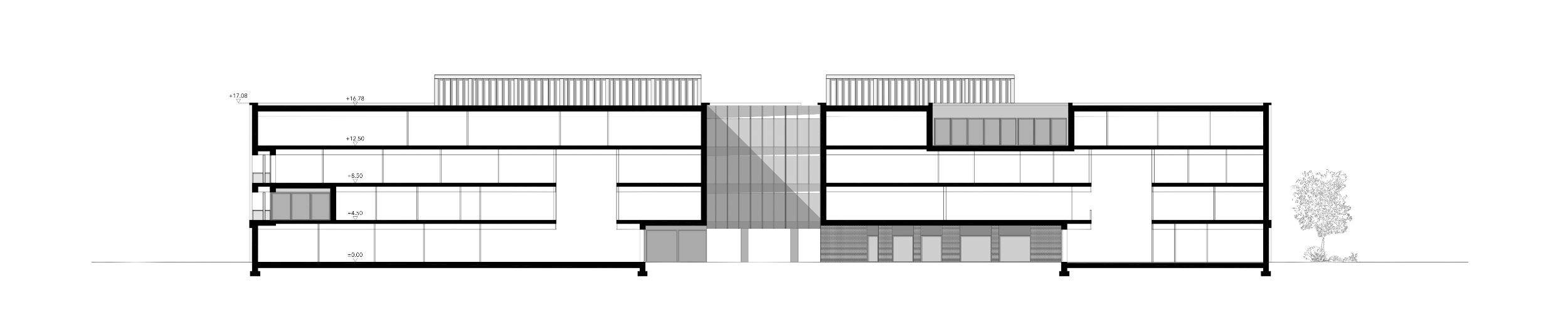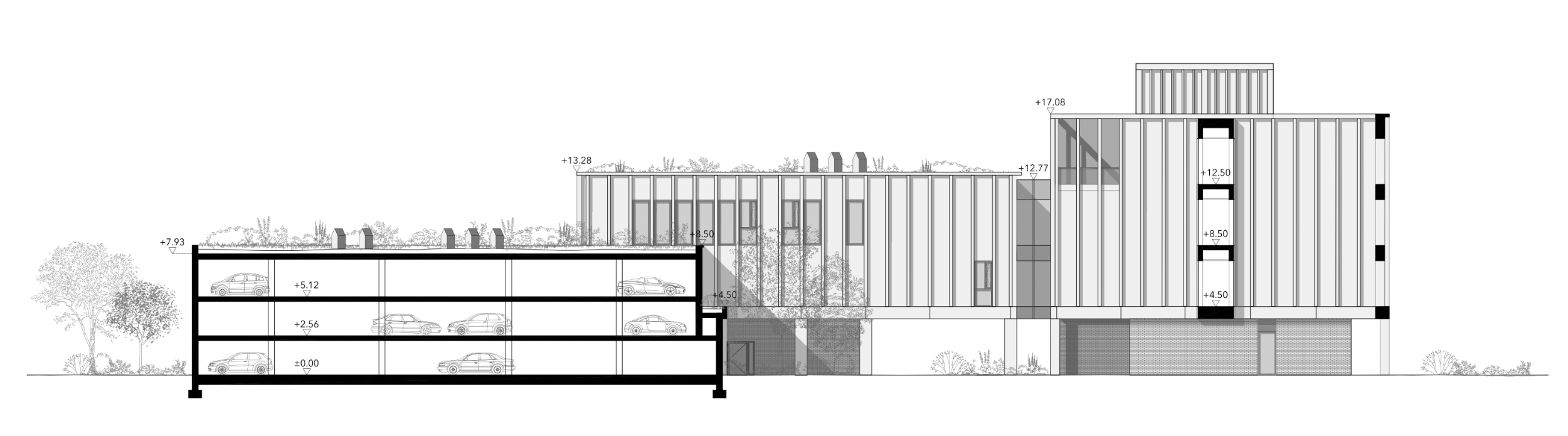 Główną ideą było stworzenie zabudowy miastotwórczej bezpośrednio powiązanej z otoczeniem – bez wydzieleń i bez barier. Zabudowany kwartał naturalnie ustanawia strefy publicznie/półpubliczne takie jak wewnętrzny dziedziniec z placem zabaw czy siłownię plenerową - obszary dostępne dla mieszkańców również poza godzinami pracy Urzędu.