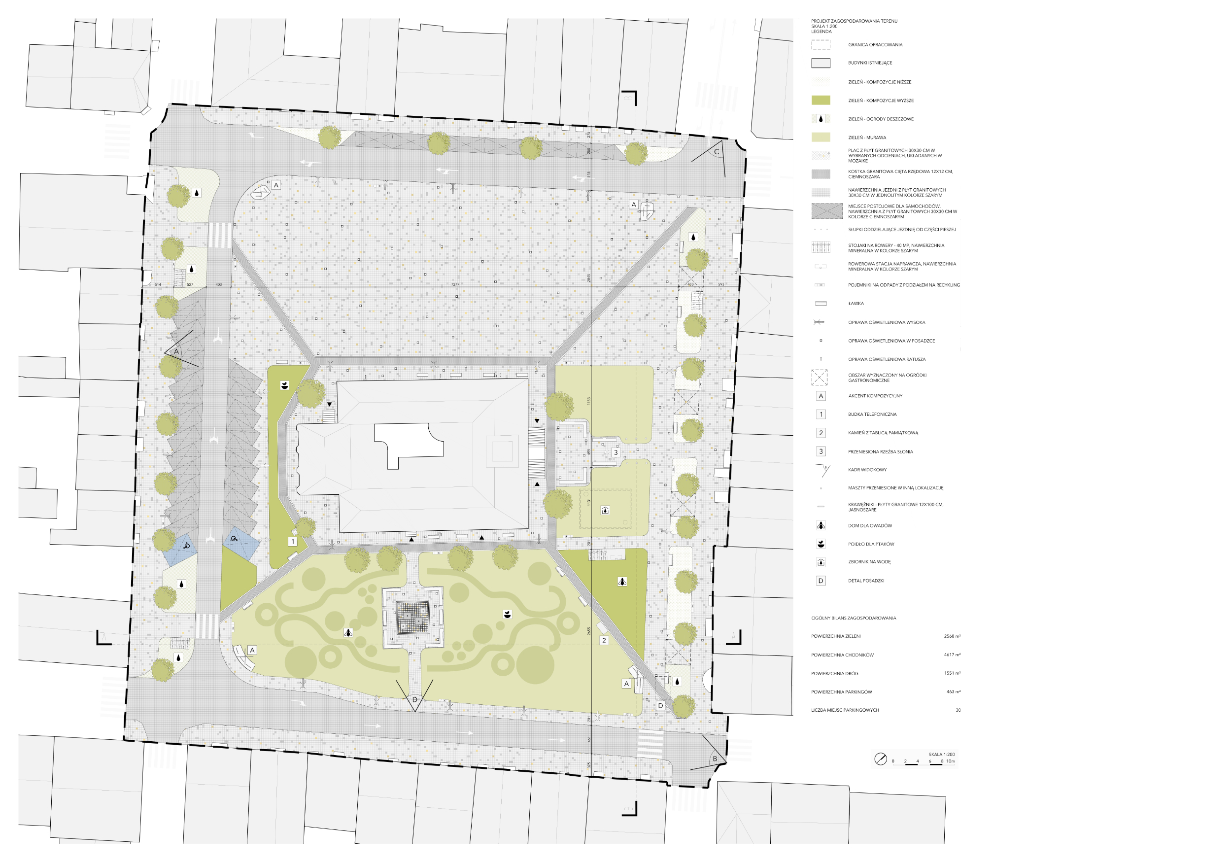 Cały teren będący przedmiotem opracowania został zrównany zgodnie z zaleceniami Konserwatora Zabytków, eliminując tym samym bariery architektoniczne.